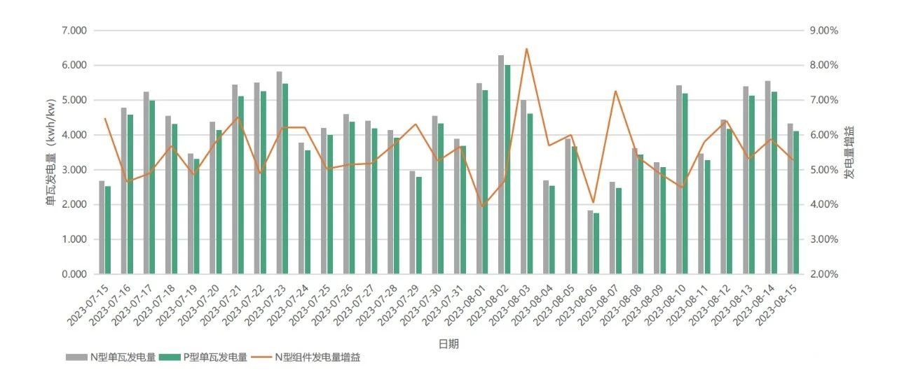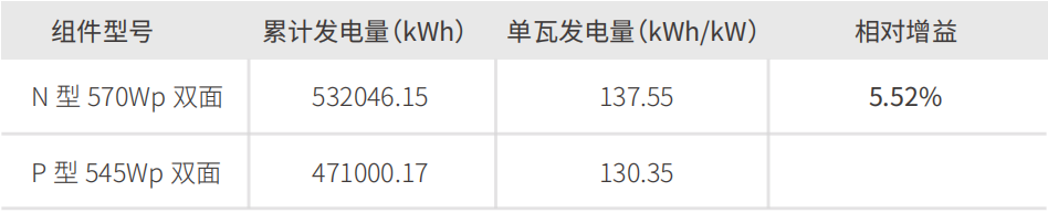 表1:N型和P型组件发电量及增益对����� �������Ƴ������������ �������Ƴ������������ �������Ƴ������������ �������Ƴ�������比